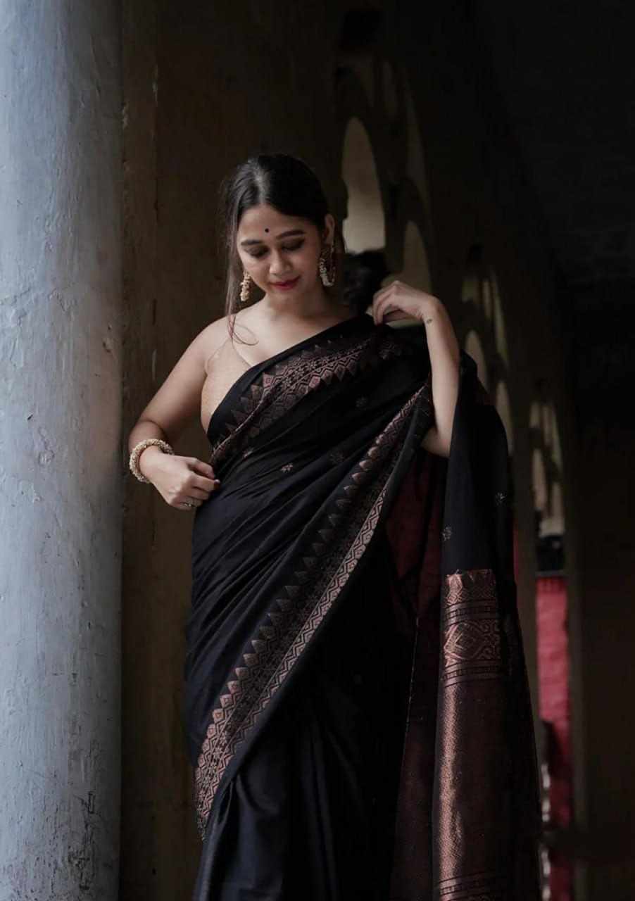 MF 1950 BLACK BANARASI SOFT LICHI SILK SAREE